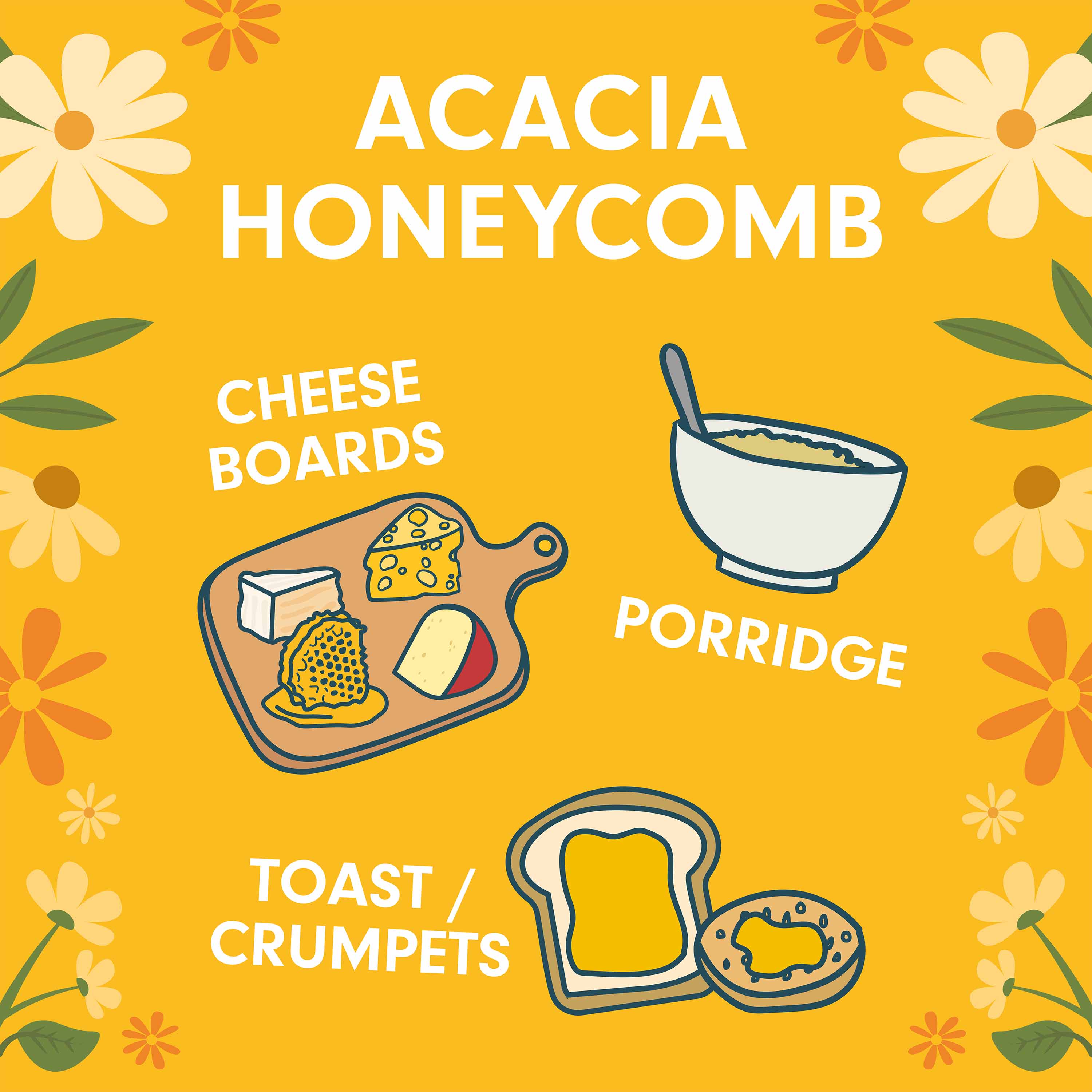 So whether you're a fan of gourmet food or simply love sweet treats, our Acacia Honeycomb is a versatile delight that can elevate any dish. Not only is it delicious, but it’s also packed with health benefits, offering a source of natural energy, antioxidants, and anti-inflammatory properties. Savour the pure, golden goodness of our Acacia honeycomb today!
